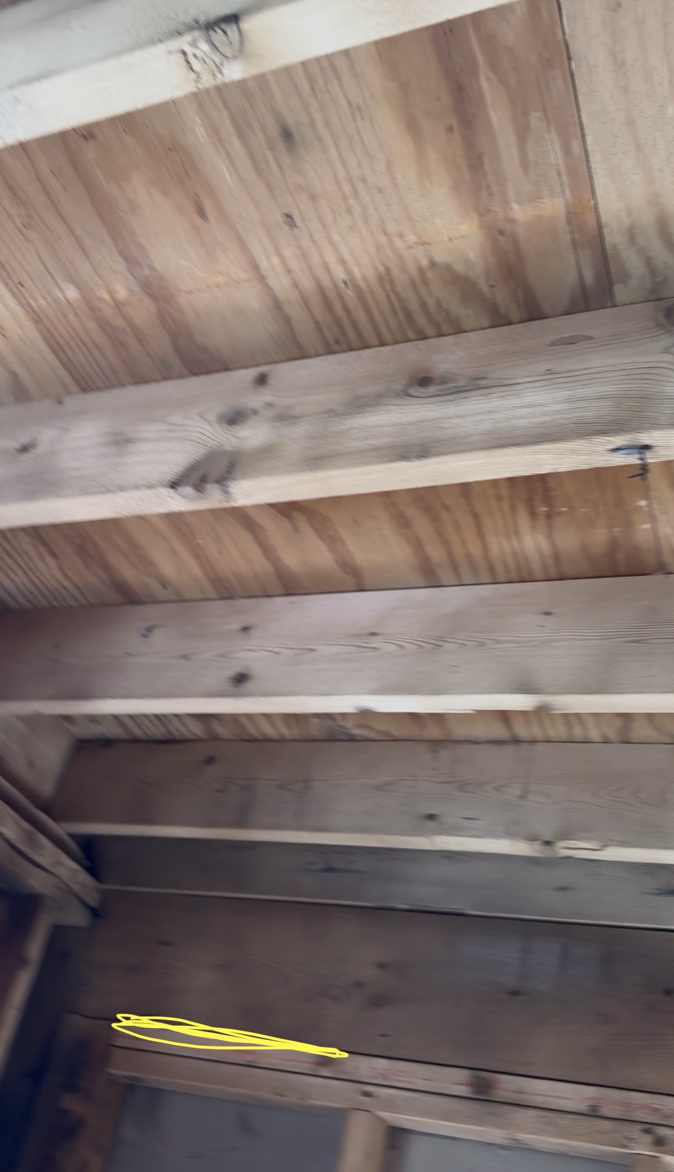 Ceiling wood beams sandblasted by Green Mountain Mobile Sandblasting and Powder Coating in Craftsbury Vermont with T&G areas left untouched